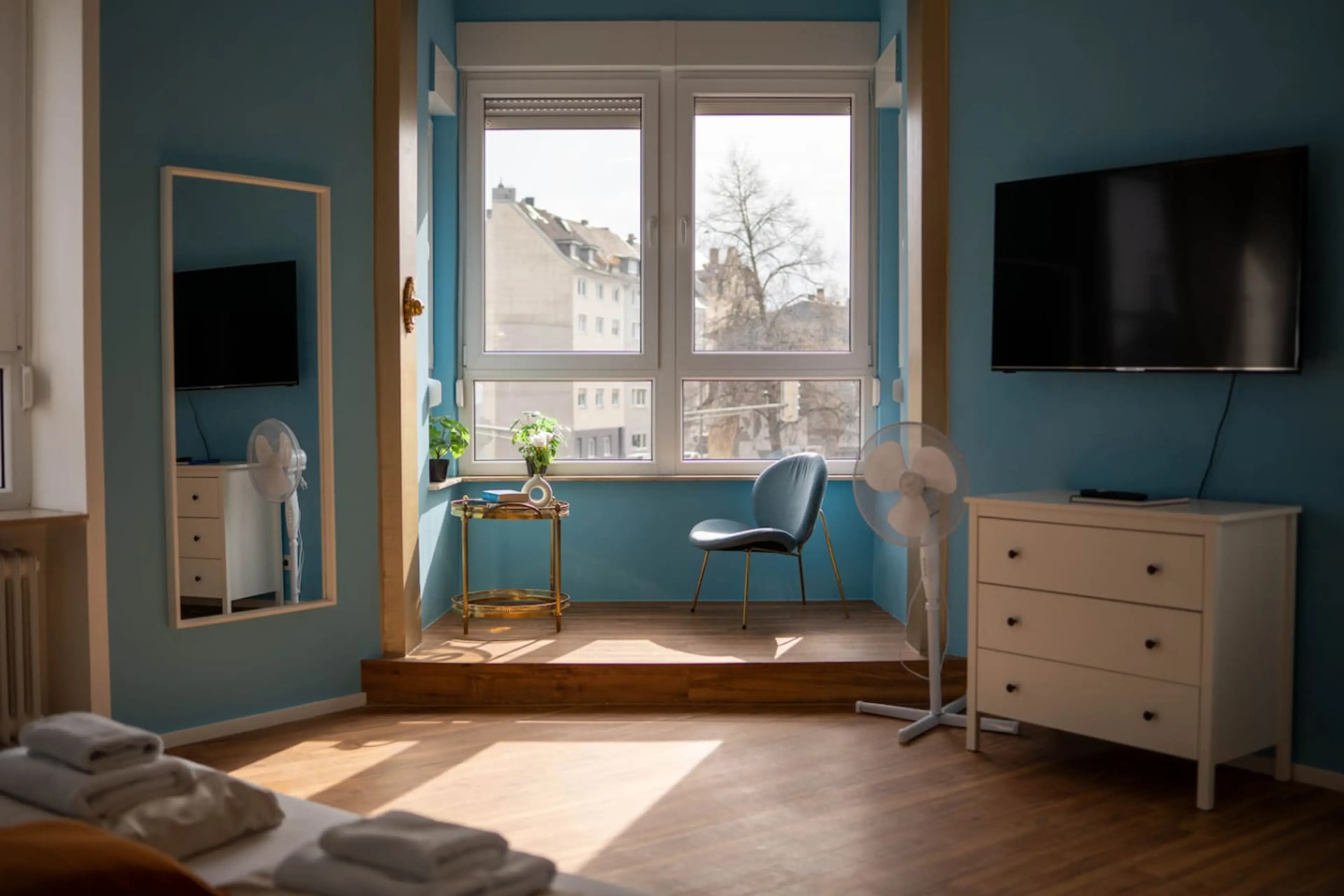 Genieße deinen Aufenthalt in diesem stilvollen und lichtdurchfluteten Design-Apartment im Herzen von Koblenz. Hohe Decken, moderner Komfort und großzügige Räume schaffen eine besondere Wohlfühlatmosphäre. Das gemütliche Bett, eine Sitzecke sowie Smart-TV und WLAN sorgen für Entspannung. Die voll aus...